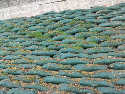 邊坡工程中,此新型材料,可以完全替代石頭,水泥等材料,可以大幅度減少工程成本。施工后的邊坡具有可植被覆蓋的表面,使開(kāi)挖的坡面達(dá)到綠化的效果,形成自然生態(tài)邊坡。具有透水不透土的過(guò)濾功能,這樣形成的邊坡具有高度透水性,對(duì)土壤流失,局部泥(土)石流,邊坡塌方等具有很強(qiáng)的防護(hù)和穩(wěn)定作用,可成為永久性高穩(wěn)定自然邊坡。